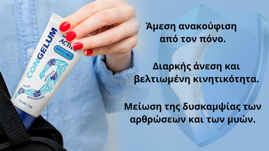 Αν ο στόχος σας είναι να κινείστε πιο άνετα και να ανακτήσετε την αυτοπεποίθησή σας στις αρθρώσεις σας, το Congelum προσφέρει μια απλή διαδρομή: απλή και καθημερινή εφαρμογή που ενσωματώνεται στη ρουτίνα σας και μια διαδικασία αγοράς σχεδιασμένη για την ηρεμία σας, με πληρωμή κατά την παράδοση (πληρωμή κατά την παραλαβή, χωρίς καθυστέρηση).